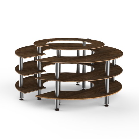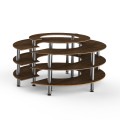 Mogogo Buffet Solutions Modular Market Station, 4-tier, 81-1/2" dia. x 41"H, round, Bengali mango wood BHP high pressure laminate with bamboo core top, brushed stainless steel legs, knockdown