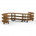 Mogogo Buffet Solutions Modular Serving Station, 3-tier, 141-1/2" x 124" x 35"H, s-shaped, high density bamboo finish, brushed brass casters, knockdown