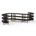Mogogo Buffet Solutions Modular Serving Station, 3-tier, 141-1/2" x 124" x 35"H, s-shaped, Nero Marquina marble BHP high pressure laminate with bamboo core top, brushed brass legs, knockdown