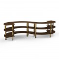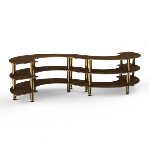 Mogogo Buffet Solutions Modular Serving Station, 3-tier, 141" x 76" x 35"H, small, s-shaped, Bengali mango wood BHP high pressure laminate with bamboo core top, brushed brass legs, knockdown