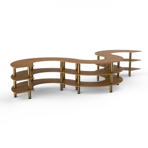 Mogogo Buffet Solutions Modular Serving Station, 3-tier, 202" x 77" x 35"H, large, snake-shape, high density bamboo finish, brushed brass legs, knockdown