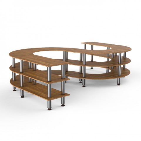 Mogogo Buffet Solutions Modular Creative Serving Station, 3-tier, 141" x 88" x 35"H, large, s-shape, high density bamboo finish, brushed stainless steel legs, knockdown