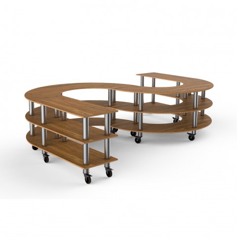 Mogogo Buffet Solutions Modular Creative Serving Station, 3-tier, 141" x 88" x 35"H, large, s-shape, high density bamboo finish, brushed stainless steel casters, knockdown