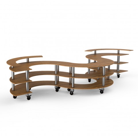 Mogogo Buffet Solutions Modular Creative Serving Station, 3-tier, 202" x 41" x 41"H, snake shaped, with shelves, high density bamboo finish, brushed stainless steel casters, knockdown
