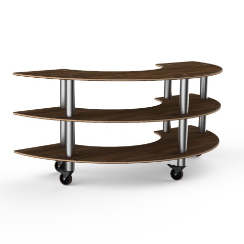 Mogogo Buffet Solutions Modular Creative Serving Station, 3-tier, 81-1/2" x 41" x 35"H, curved, Bengali mango wood BHP high pressure laminate with bamboo core top, brushed stainless steel casters, knockdown