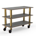 Mogogo Buffet Solutions Modular Creative Extension Unit, 3-tier, 47" x 21" x 35"H, rectangular, grey slate BHP high pressure laminate with bamboo core top, brushed brass casters, knockdown