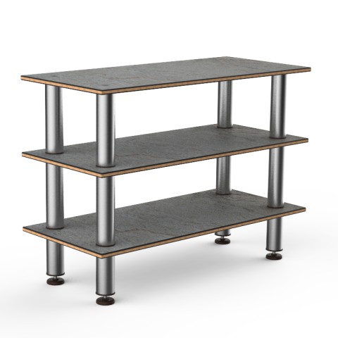 Mogogo Buffet Solutions Modular Creative Extension Unit, 3-tier, 47" x 21" x 35"H, rectangular, grey slate BHP high pressure laminate with bamboo core top, brushed stainless steel legs, knockdown