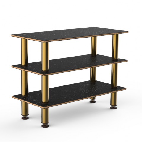 Mogogo Buffet Solutions Modular Creative Extension Unit, 3-tier, 47" x 21" x 35"H, rectangular, Nero Marquina marble BHP high pressure laminate with bamboo core top, brushed brass legs, knockdown