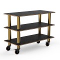 Mogogo Buffet Solutions Modular Creative Extension Unit, 3-tier, 47" x 21" x 35"H, rectangular, Nero Marquina marble BHP high pressure laminate with bamboo core top, brushed brass casters, knockdown