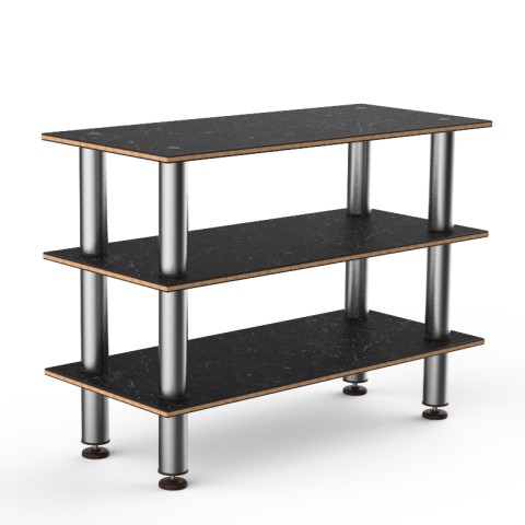 Mogogo Buffet Solutions Modular Creative Extension Unit, 3-tier, 47" x 21" x 35"H, rectangular, Nero Marquina marble BHP high pressure laminate with bamboo core top, brushed stainless steel legs, knockdown
