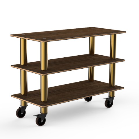 Mogogo Buffet Solutions Modular Creative Extension Unit, 3-tier, 47" x 21" x 35"H, rectangular, Bengali mango wood BHP high pressure laminate with bamboo core top, brushed brass casters, knockdown
