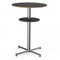 Mogogo Buffet Solutions Polo Bar Table, 30" dia. x 42-1/2"H, round, with shelf, Nero Marquina marble BHP high pressure laminate with bamboo core top, brushed stainless steel segments, knockdown