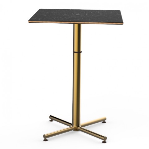 Mogogo Buffet Solutions Polo Bar Table, 30" x 30" x 42"H, square, Nero Marquina marble BHP high pressure laminate with bamboo core top, brushed brass segments, knockdown
