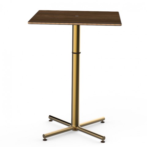 Mogogo Buffet Solutions Polo Bar Table, 30" x 30" x 42"H, square, Bengali mango wood BHP high pressure laminate with bamboo core top, brushed brass segments, knockdown
