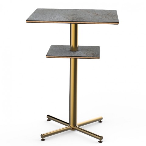 Mogogo Buffet Solutions Polo Bar Table, 30" x 30" x 42-1/2"H, square, with shelf, grey slate BHP high pressure laminate with bamboo core top, brushed brass segments, knockdown