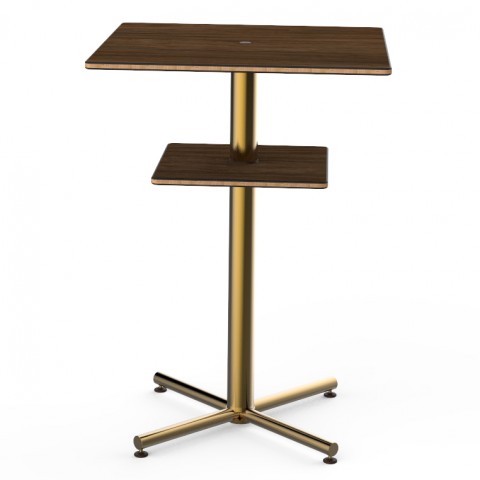 Mogogo Buffet Solutions Polo Bar Table, 30" x 30" x 42-1/2"H, square, with shelf, Bengali mango wood BHP high pressure laminate with bamboo core top, brushed brass segments, knockdown