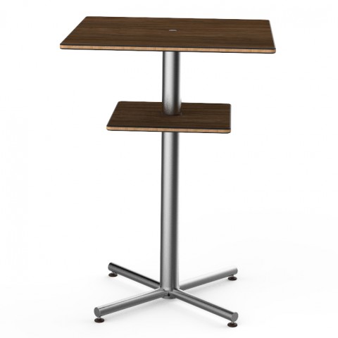 Mogogo Buffet Solutions Polo Bar Table, 30" x 30" x 42-1/2"H, square, with shelf, Bengali mango wood BHP high pressure laminate with bamboo core top, brushed stainless steel segments, knockdown