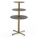 Mogogo Buffet Solutions Polo Display Table, 3-tier, 30" dia. x 55"H, round, grey slate BHP high pressure laminate with bamboo core top, brushed brass segments, knockdown