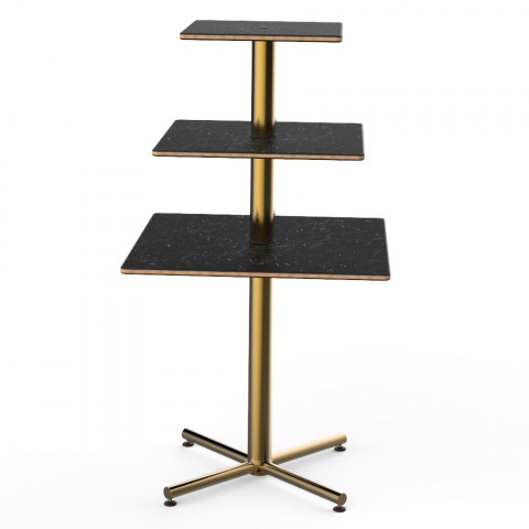 Mogogo Buffet Solutions Polo Display Table, 3-tier, 30" x 30" x 55"H, square, Nero Marquina marble BHP high pressure laminate with bamboo core top, brushed brass segments, knockdown