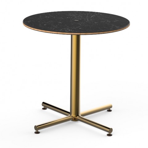 Mogogo Buffet Solutions Bistro Table, 30" dia. x 29" H, round, Nero Marquina marble BHP high pressure laminate with bamboo core top, brushed brass segments, knockdown