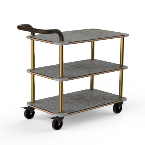 Mogogo Buffet Solutions Roll'n Service Cart, 41-1/2" x 21" x 36"H, multi-purpose, (3) grey slate BHP shelves, push handle, stainless steel frame, brushed brass finish, heavy duty casters, knockdown