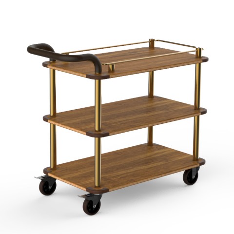 Mogogo Buffet Solutions Roll'n Service Cart, 41-1/2" x 21" x 36"H, multi-purpose, with border, (3) high density bamboo finish shelves, push handle, stainless steel frame, brushed brass finish, heavy duty casters, knockdown