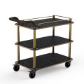 Mogogo Buffet Solutions Roll'n Service Cart, 41-1/2" x 21" x 36"H, multi-purpose, with border, (3) Nero Marquina marble BHP shelves, push handle, stainless steel frame, brushed brass finish, heavy duty casters, knockdown