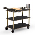 Mogogo Buffet Solutions Roll'n Mixology Service Cart, 41-1/2" x 21" x 40-1/2"H, multi-purpose, (3) Nero Marquina marble BHP shelves, push handle, stainless steel frame, brushed brass finish, heavy duty casters, knockdown