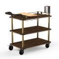 Mogogo Buffet Solutions Roll'n Mixology Service Cart, 41-1/2" x 21" x 40-1/2"H, multi-purpose, (3) Bengali mango wood BHP shelves, push handle, stainless steel frame, brushed brass finish, heavy duty casters, knockdown