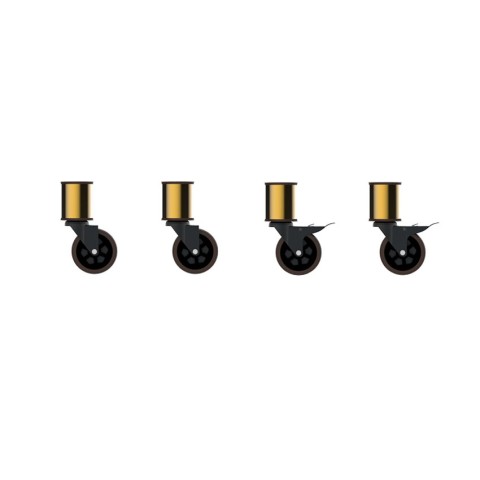 Mogogo Buffet Solutions Modular Casters, swivel/stem, (2) with brakes & (2) without, 220 lb capacity per caster, with adaptors, TPR, brushed brass segments (4 each per set)