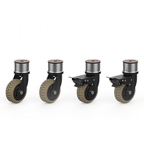 Casters, with segment adaptor, heavy duty (2 with brakes, 2 without), stainless steel, Mogogo, Modular (minimum = case quantity) (Non Stock item)