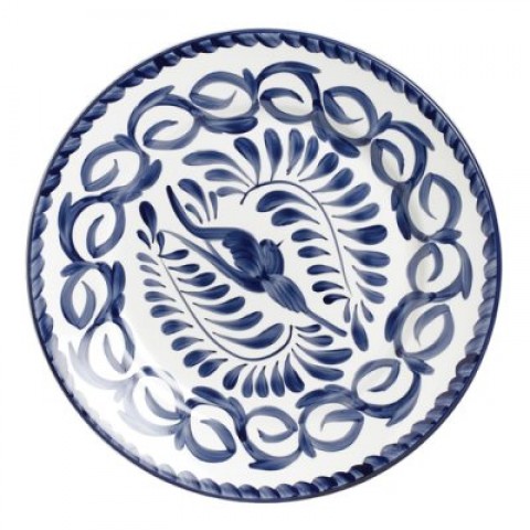 Plate, 10‐1/4" dia., rolled edge, round, hand painted, fully vitrified china, Anfora, Talavera Black (non‐stock item) Dimensions 10.25(w) 24/case
