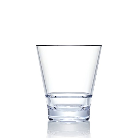 Strahl® CapellaStack Double Old Fashion Glass, short, 15 oz., (H 4-1/4"; M 4-1/8"; T 4-1/8"; B 2-3/4") shatter proof, hand finished, polycarbonate, clear (minimum = case quantity) (stock item)