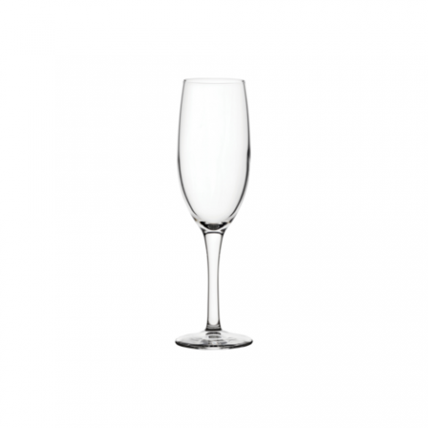 Flute Glass, 6.0 oz., (7-3/4"; M 2-3/8"; T 1-7/8"; B 2-1/4") Tempered, Soda Lime, Clear, Pasabahce, Moda (minimum = case quantity) (stock item)