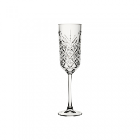 Flute Glass, 6.0 oz., (H 8-7/8"; M 2-1/2"; T 2-1/4"; B 2-1/2") Soda Lime, Clear, Pasabahce, Timeless Vintage (minimum = case quantity) (stock item)