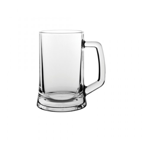 Handled Beer Mug, 23.0 oz., (H 6"; M 5-1/2"; T 3-1/2"; B 4-1/8") Soda Lime, Clear, Beer, Pasabahce, Handled (minimum = case quantity) (stock item)