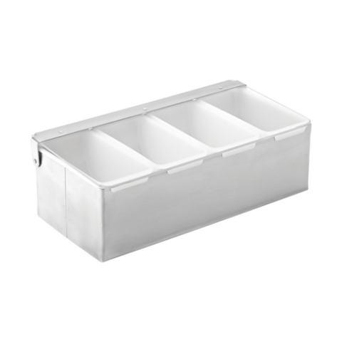 Condiment Holder, with 4 Inserts, 11.875" x 3.875"H, rectangle, stainless steel, silver, Utopia, Bar Accessories (minimum = case quantity) (stock item)