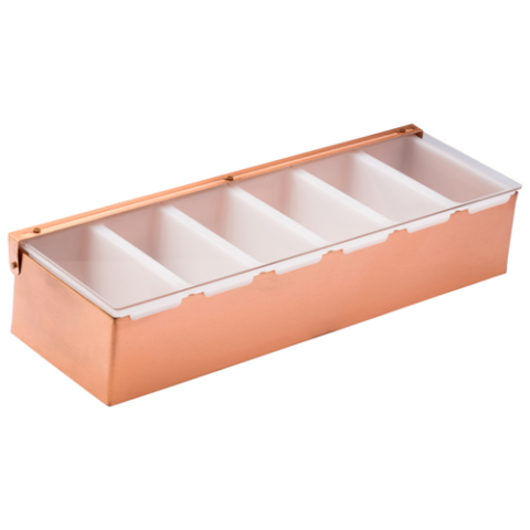 Condiment Holder, with 6 Inserts, 17.75" x 3.875"H, rectangle, stainless steel, copper, Utopia, Bar Accessories (minimum = case quantity) (stock item)