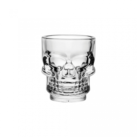 Shot Glass, 1.5 oz, (H 2-3/8"; M 2-1/4"; T 2"; B 1-3/8") soda lime, clear, Utopia, Skull (minimum = case quantity) (stock item)