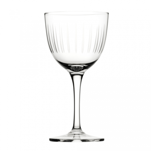 Nick & Nora Glass, 6.0 oz., (H 5-7/8"; M 3"; B 2.5"; T 3") Utopia Glass, Raffles Lines, crystalline, clear (minimum = case quantity, 24 per case) (STOCK item)