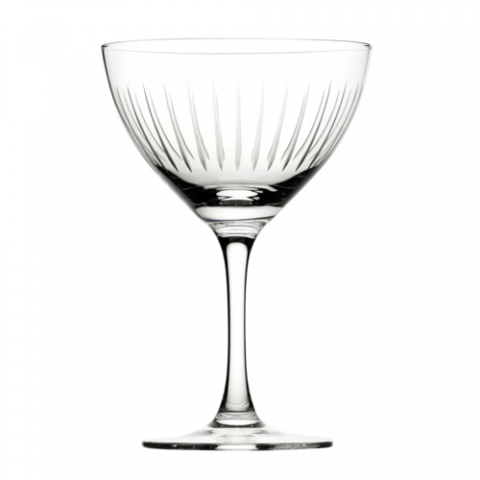 Martini Glass, 7-1/2" oz., (H 5-3/8"; M 3.625"; B 2.625"; T 3.625") Utopia Glass, Raffles Lines, crystalline, clear (minimum = case quantity, 24 per case) (STOCK item)