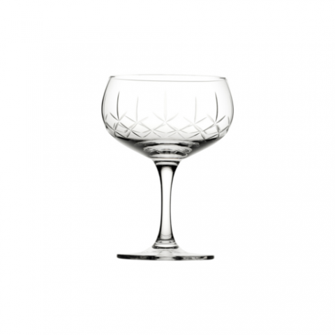 Coupe Glass, 5.5 oz, (H 4-3/4"; M 3-1/4"; T 3-1/8"; B 2-5/8") crystaline, clear, Utopia, Vintage Raffles (minimum = case quantity) (stock item)