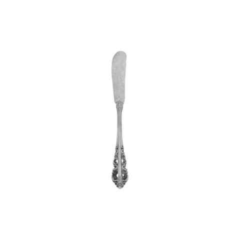 Butter Knife, 7", solid handle, pierced plumes, 18/10 stainless steel, Fieldstone™ finish, Walco 18/10, Classic Baroque™ (minimum = case quantity, 12 per case) (FIELDSTONE item)