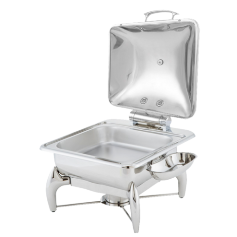 Chafing Dish Kit, 6 qt., rectangular, with solid hinged lid, food pan, and spoon holder (WI55UMT), and burner stand with (1) fuel cup (WI55BC), induction capable, 18/10 stainless steel, Walco, Idol™ (minimum = case quantity) (stock item)