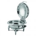 Chafing Dish Kit, 7 qt., round, with solid hinged lid, food pan, and spoon holder (WI6UMT), and burner stand with (1) fuel cup (WI6BC), induction capable, 18/10 stainless steel, Walco, Idol™ (minimum = case quantity) (stock item)