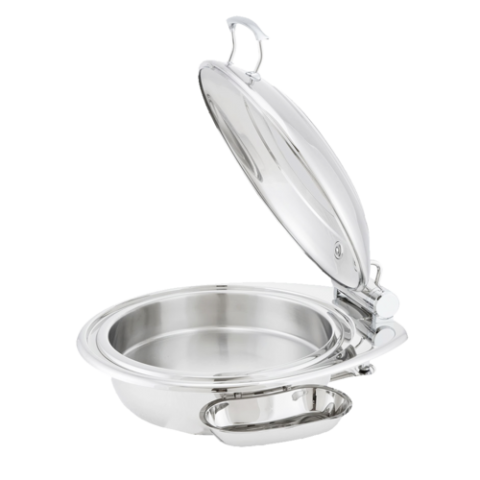 Chafer Dish Body, 7 QT, 21 IN X 18 1/2 IN X 10 1/4 IN , round, with solid hinged lid, food pan & spoon holder, induction capable, 18/10 stainless steel, Walco, Idol™ (minimum = case quantity) (stock item)