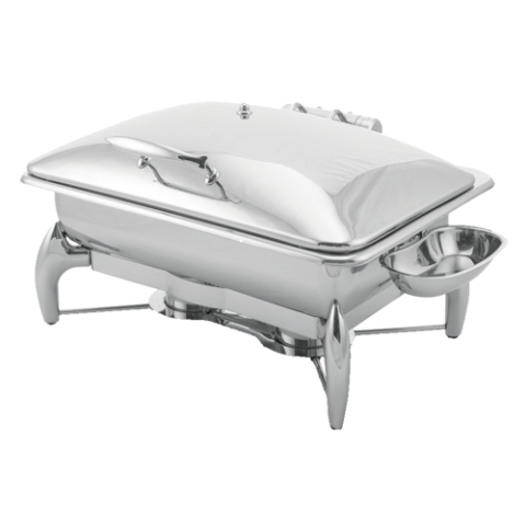 Chafing Dish Kit, 8 QT, 23 IN X 18 1/2 IN X 16 3/4 IN, rectangular, with solid hinged lid, food pan, and spoon holder (WI9UMT), and burner stand with (2) fuel cups (WI9BC), induction capable, 18/10 stainless steel, Walco, Idol™ (minimum = case quantity) (stock item)
