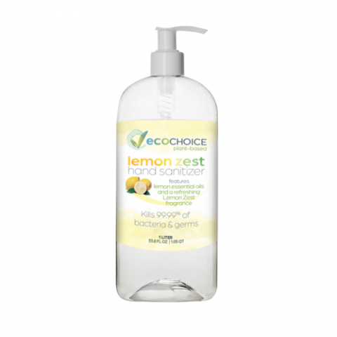 Hand Sanitizer, 1 liter, locking pump dispenser, 2mL dose per pump, 70% alcohol, plant based ethanol formula, lemon zest scent, FDA registered gel formula, Made in USA (8 per case) (Delivered Price)