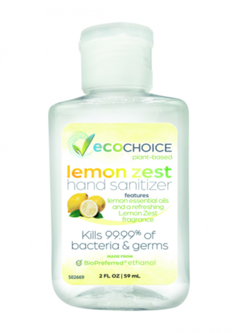 Hand Sanitizer, 2 oz., 70% alcohol, plant based ethanol formula, lemon zest scent, FDA registered gel formula, Made in USA (10 each per pack, 8 packs per case) (Delivered Price, freight may be added if minimum order requirement not met).