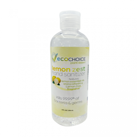 Hand Sanitizer, 8 oz., 70% alcohol, plant based ethanol formula, lemon zest scent, FDA registered gel formula, Made in USA (4 each per pack, 10 packs per case) (Delivered Price, freight may be added if minimum order requirement not met)